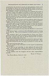 After Britain said it could no longer help Greece, the Greek Prime Minister, Konstantinos Tsaldaris, visited Washington, D.C. in December 1946 to ask for aid. The U.S. State Department then created a plan. It decided to give aid to both Greece and Turkey. This would help calm their old rivalry and strengthen them.