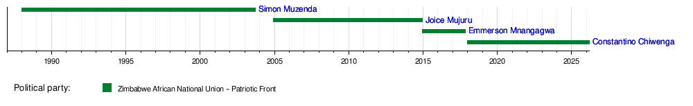 28 December 2017 | Incumbent | 8 years, 65 days | ZANU–PF | ||
