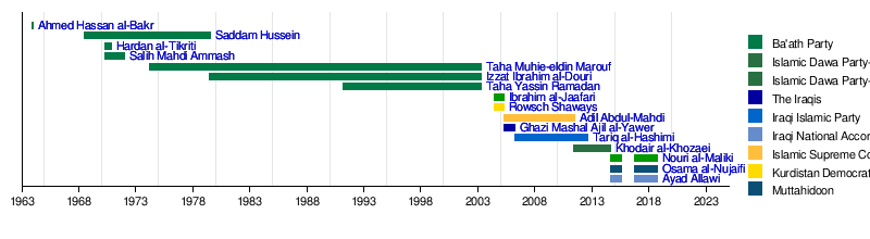3 April 1970 | December 1971 | 1 year, 7 months | Iraqi Ba'ath Party (Iraq Region) |