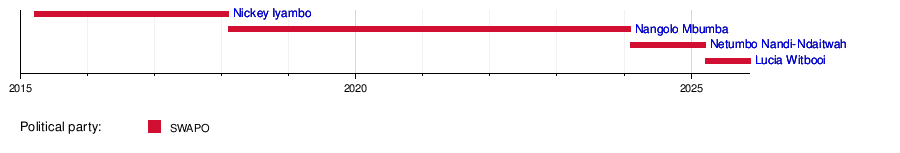 22 March 2025 | Incumbent | 240 days | SWAPO | |