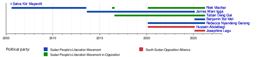 This timeline shows when each Vice President served in South Sudan.
