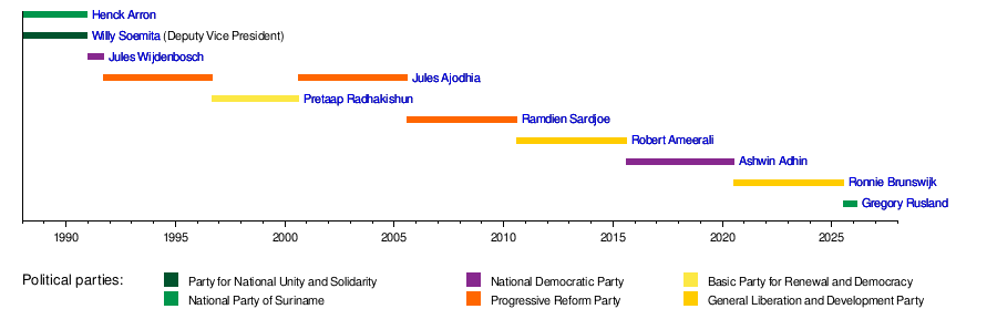 12 August 2000 | 12 August 2005 | 5 years | VHP | Ronald Venetiaan (NPS) |