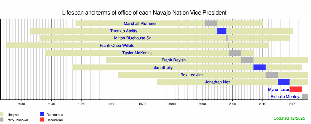 The table below lists all the people who have served as the Vice President of the Navajo Nation since the position was created.